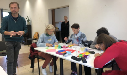 Na povabilo mentorice slikarskih delavnic Irene Gayatri Horvat, so se štiri naše članice s spremljevalcem udeležile origami delavnice v Zagrebu. Organizator je bilo hrvaško društvo likovnih umetnikov in likovnih kritikov HULULK Zagreb s predsednico Sando Stanaćev Bajzek, ki je vse prisotne pozdravila.
