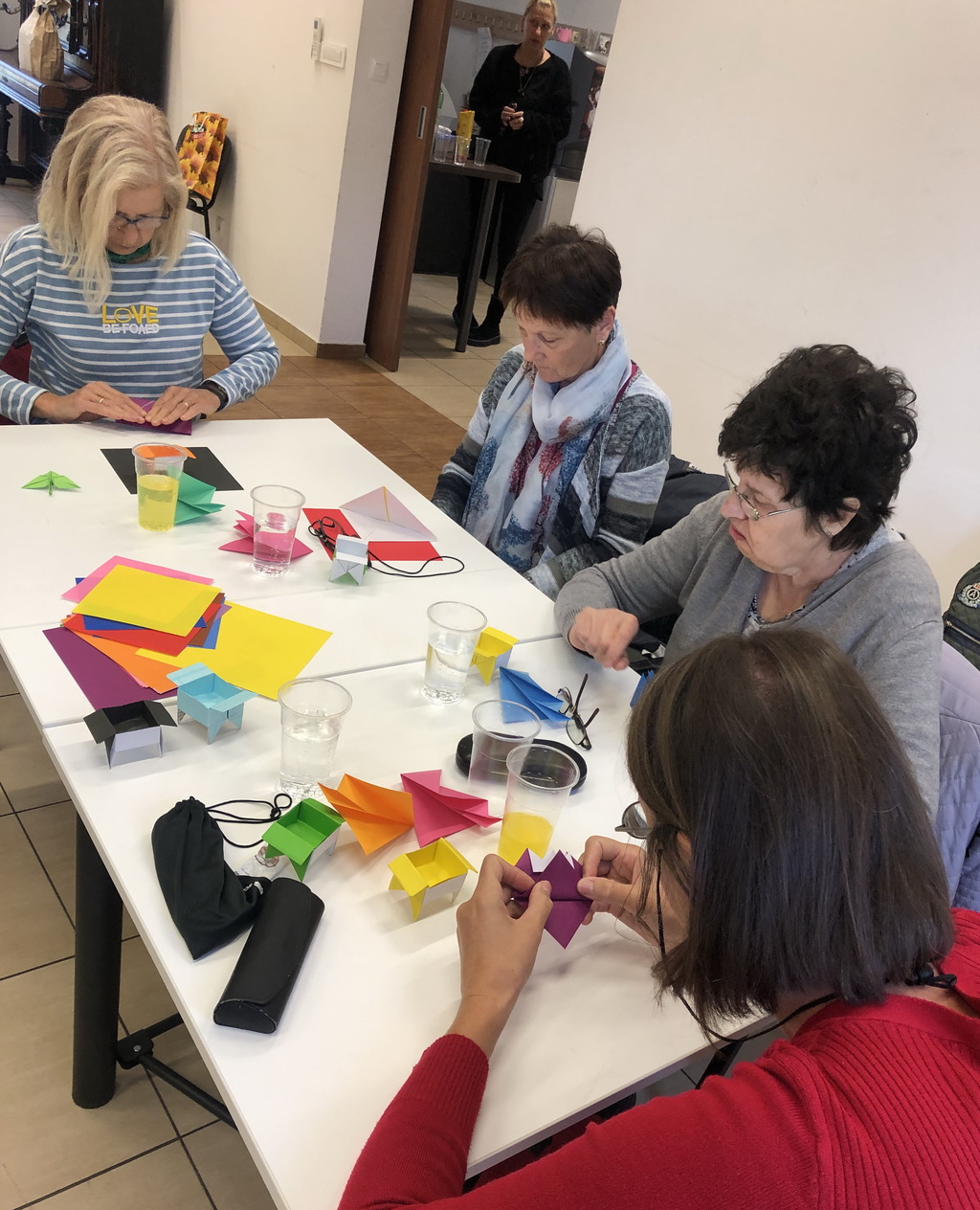 Delavnica je potekala v galerijskih prostorih župnije cerkve sv. Leopolda Mandića. Na delavnici so sodelovali tudi nekateri gluho slepi hrvaški udeleženci. Umetnost origamija jim je pokazal priznani origami mojster Krešimir Rajki. Ob prijetnem in veselem druženju so ustvarili kar nekaj ptičev, metuljčkov, ribic in škatlic.