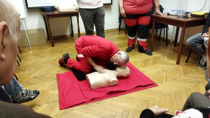 V četrtek 24.11. nas je ponovno obiskala ekipa prve pomoči in nam predstavila ravnanje in postopek oživljanja v primeru zastoja srca. Praktično so nam prikazali uporabo avtomatskega defibrilatorja, ki se nahaja tudi v vetrolovu naše stavbe. Praktično smo se naučili tudi tehnike pravilnega stiskanja prsnega koša.